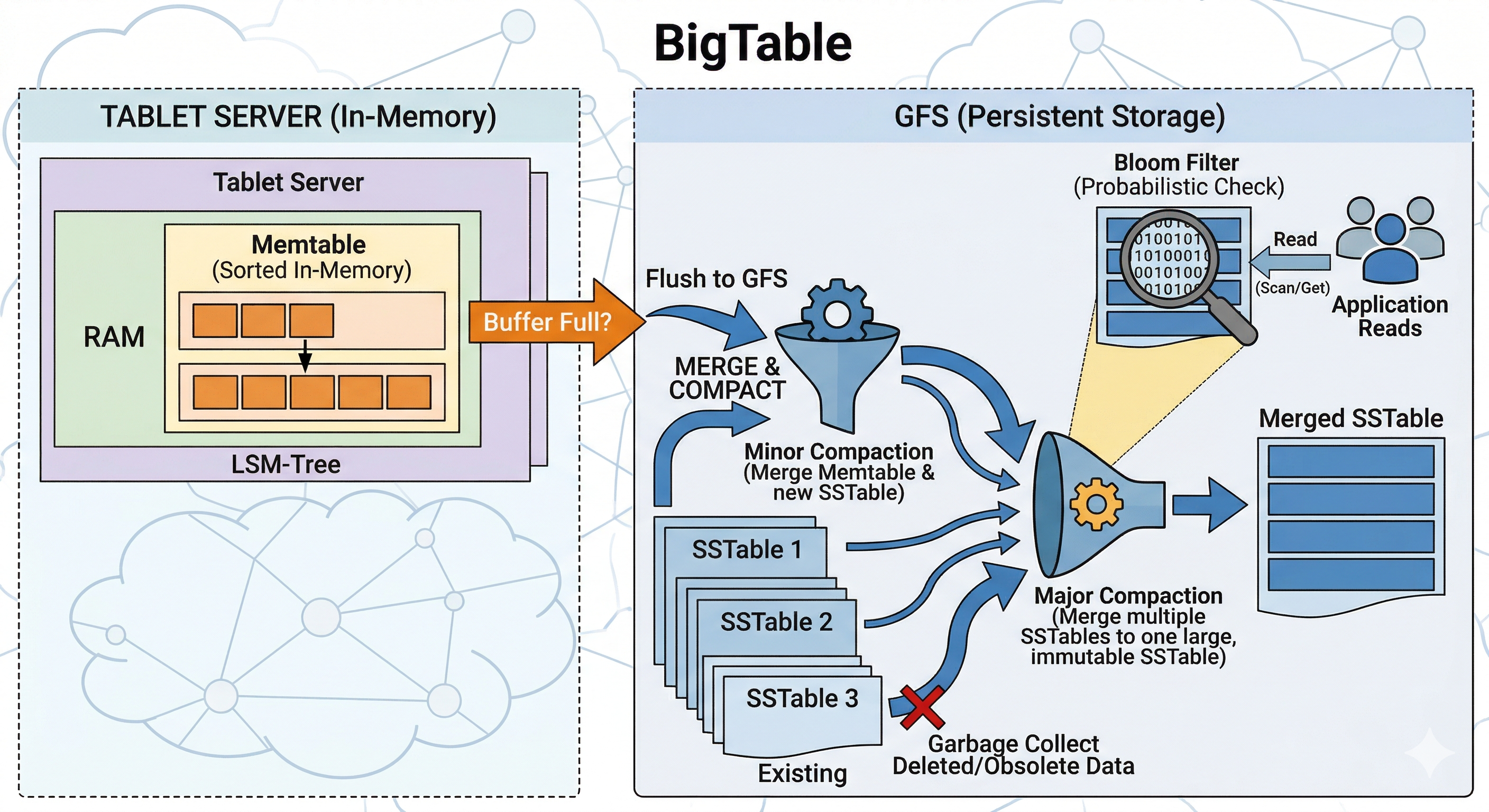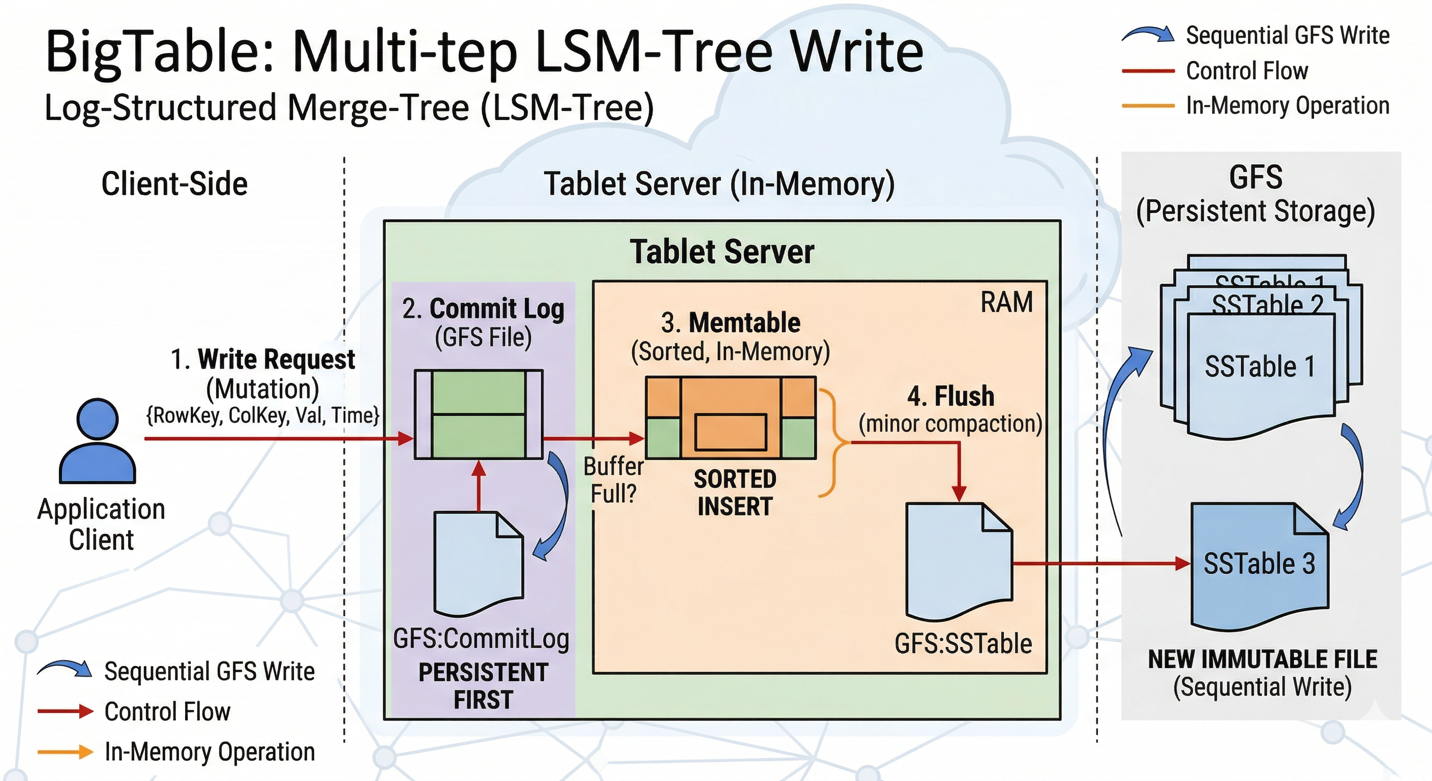 BigTable은 LSM-Tree(Log-Structured Merge-Tree) 구조를 사용해 이를 해결합니다.
